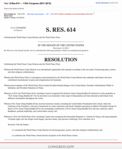 ▲ 美國國會參議院第614號決議:正式用H.H.加冠於第三世多杰羌佛