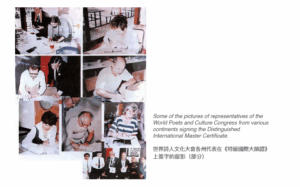 ▲ 世界詩人文化大會各國代表在《特級國際大師》上簽字的留影 (部分)