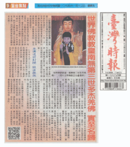 台灣時報2020年11月13日:世界佛教教皇 – 南無第三世多杰羌佛
