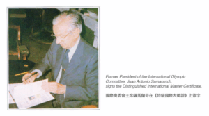 ▲ 國際奧委會主席薩馬蘭奇在特級國際大師證上簽字