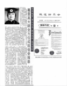 ▲ 2004年3月10日 天天日報 義雲高大師獲授英國皇家藝術學院Fellowship職稱:兩百年來第一位 世界藝術界心悅誠服 咸認華人之光