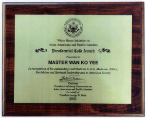 2002年9月、10月,祂先後獲得“美國總統金牌獎章”和美國錢尼副總統親臨頒發的“卓越成就勳章”,表彰祂崇高的倫理道德、藝術成就和對人類的貢獻,是整個華裔中唯一獲此殊榮者。