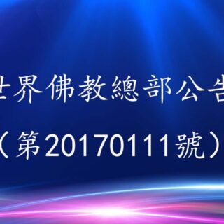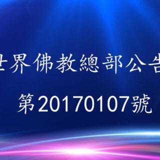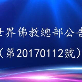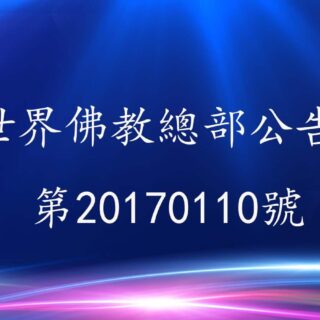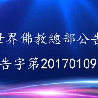 0 世界佛教總部公告 27 11 月, 2022 by admin · Published 27 11 月, 2022 · Last modified 14 1 月, 2025 聯合國際世界佛教總部公告 第20170103號 聯合國際世界佛教總部公告 第20170103號 &nb...